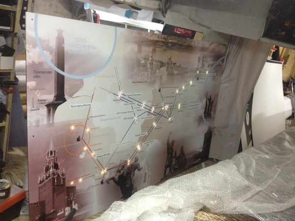 Мы можем предложить различные варианты панно с контражурной подсветкой или акриловые панно с печатю и встроенными светодиодными элементами.